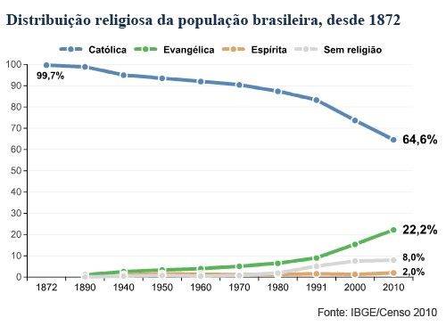 “Os resultados do Censo Demográfico 2010 mostram o crescimento da diversidade dos grupos religiosos no Brasil, revelando uma maior pluralidade nas áreas mais urbanizadas e populosas do país”, concluiu o estudo do IBGE no texto de divulgação dos resultados.